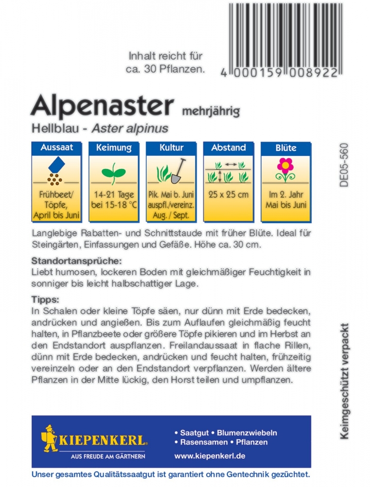 | Inhalt reicht für ca.: | 30 Pflanzen |